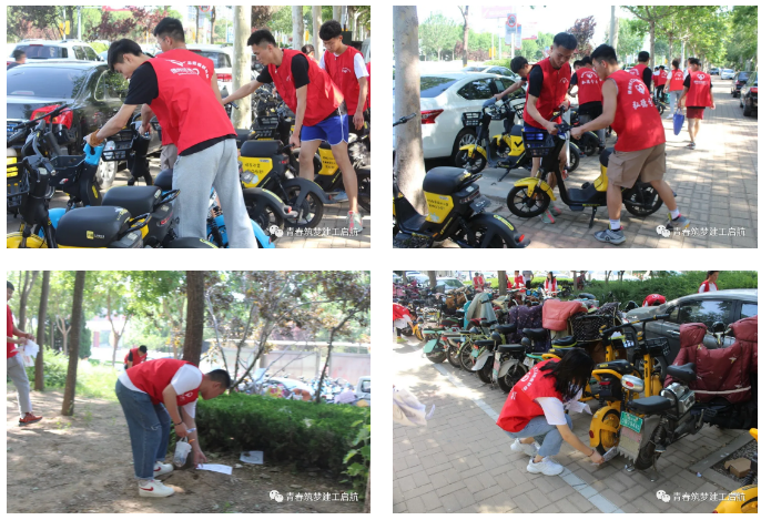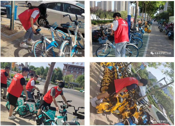 活动中,志愿者们清除道路沿线的垃圾,规范摆放共享单车,引导广大群众自觉遵守规定,有序停放车辆。