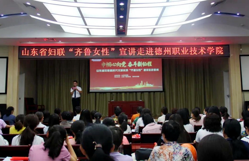 6月8日,由山东省妇联主办,德州市妇联和山东广播电视台承办的“巾帼心向党,奋斗新征程”山东省妇联新时代文明实践“齐鲁女性”宣讲走进德州职业技术学院。我校党委委员、工会主席周爱红出席,180余位女教职工参加活动。
