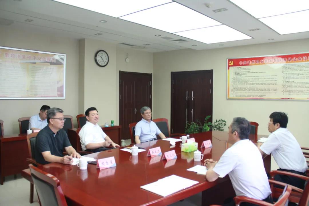 6月16日,德州市委常委、宣传部部长景文新,德州市教育和体育局党组副书记、市委教育工委副书记、体育总会主席张卫东一行4人到德州职业技术学院调研。校党委书记樊兆杰,院长张同光,校党委委员、副院长多建民,校党委委员、办公室主任、宣传部部长周吉星陪同。