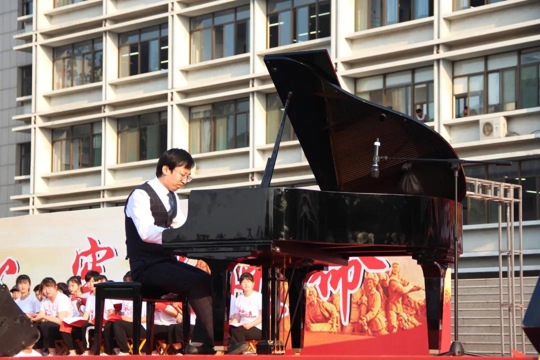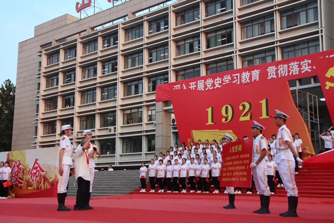 活动最后,86岁的老党员史秀峰带领我校全体共产党员面对党旗庄严宣誓,德州职业技术学院全体师生共同起立合唱《没有共产党就没有新中国》,表达了我校全体师生与祖国同心同德共发展的美好心声!