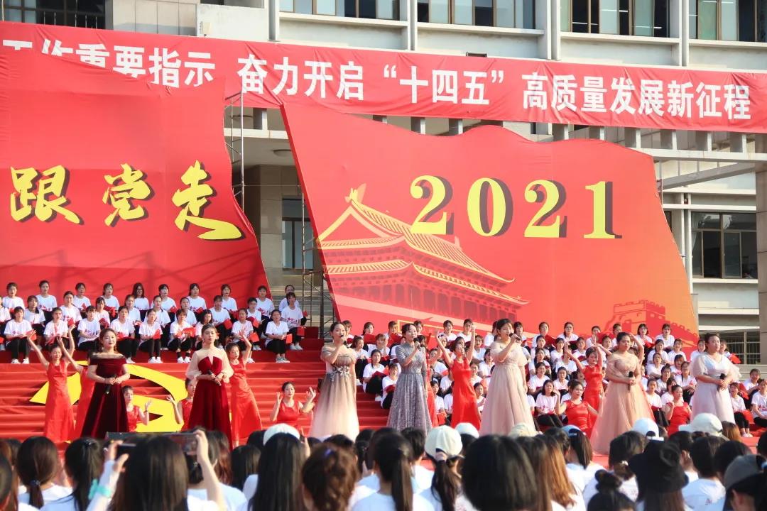 为隆重庆祝建党100周年,回顾党的发展征程,扎实开展党史学习教育,教育引导广大师生感党恩、听党话、跟党走,6月22日,德州职业技术学院隆重举行“永远跟党走”建党百年文艺演出。校领导樊兆杰、周爱红、殷淑英、多建民、郭士武、周吉星和孟繁营出席,各处室系(院)负责人和老师、同学们观看演出。