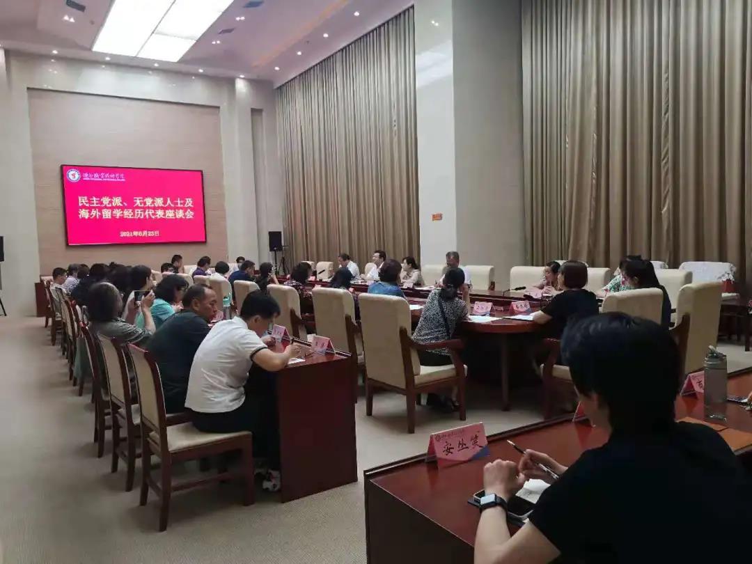 6月23日,我校召开民主党派人士、党外知识分子及海外留学经历人员代表座谈会。校党委书记樊兆杰、副院长张苹出席会议,致公、民革、民盟、民建、民进、九三学社、农工等民主党派人士、党外知识分子及海外留学归国人员代表40余人参加会议。校党委委员、统战部部长孟繁营主持。