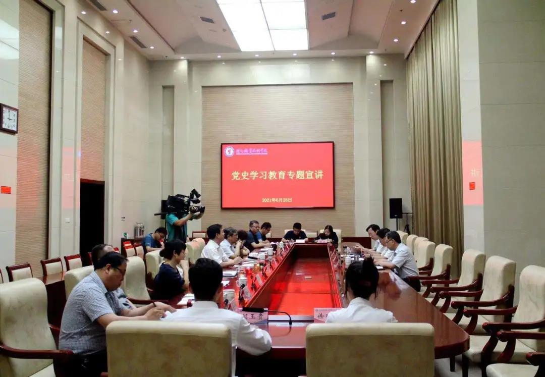 6月28日下午,德州市政协主席翟长生来我校开展党史学习教育专题调研及宣讲,市政协秘书长魏增新,校领导樊兆杰、张同光、张苹、周爱红、殷淑英、多建民、郭士武、周吉星、孟繁营陪同,学校思政课教师及学生党员代表参加党史学习教育宣讲活动。