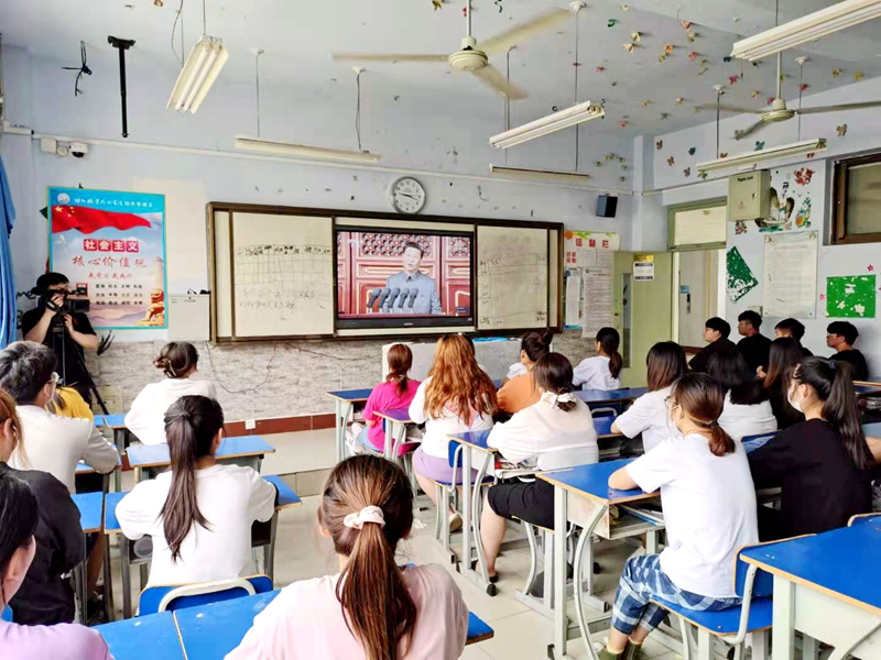 7月1日上午8时,庆祝中国共产党成立100周年大会在北京天安门广场隆重举行。中共中央总书记、国家主席、中央军委主席习近平发表重要讲话。德州职业技术学院全体干部、师生收看庆祝中国共产党成立100周年大会直播,反响热烈。