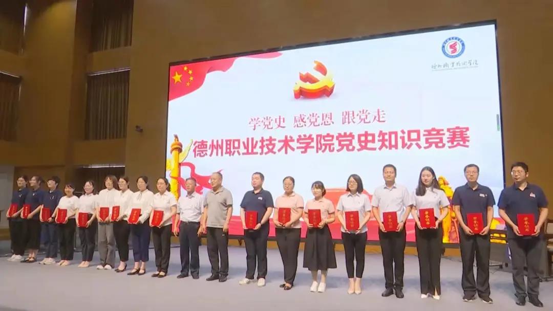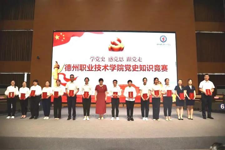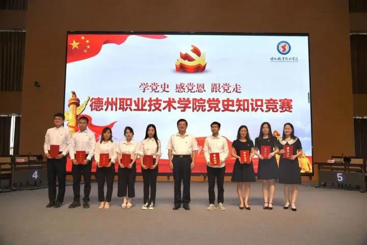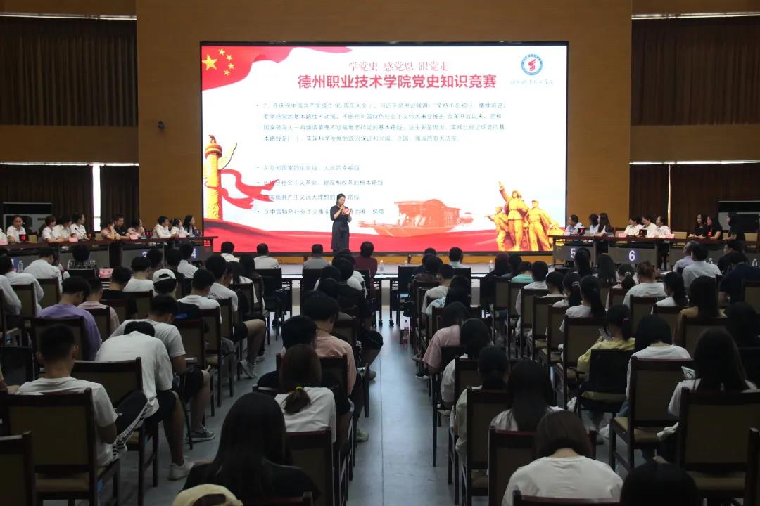 为庆祝中国共产党成立100周年,推动学校党史学习教育走深走实,引导全校师生学史明理、学史增信、学史崇德、学史力行,7月2日,“学党史 感党恩 跟党走”德州职业技术学院党史知识竞赛在德州市职业教育公共实习实训管理中心多功能厅举行。