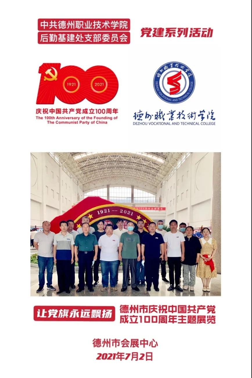 7月2日,我校后勤基建处党支部组织党员干部职工赴德州市会展中心参观德州市庆祝中国共产党成立100周年主题展览。后勤基建处党支部集中学习了中国共产党成立100年来德州在经济、政治、文化、社会和生态文明建设以及党的建设等方面取得的辉煌成就。