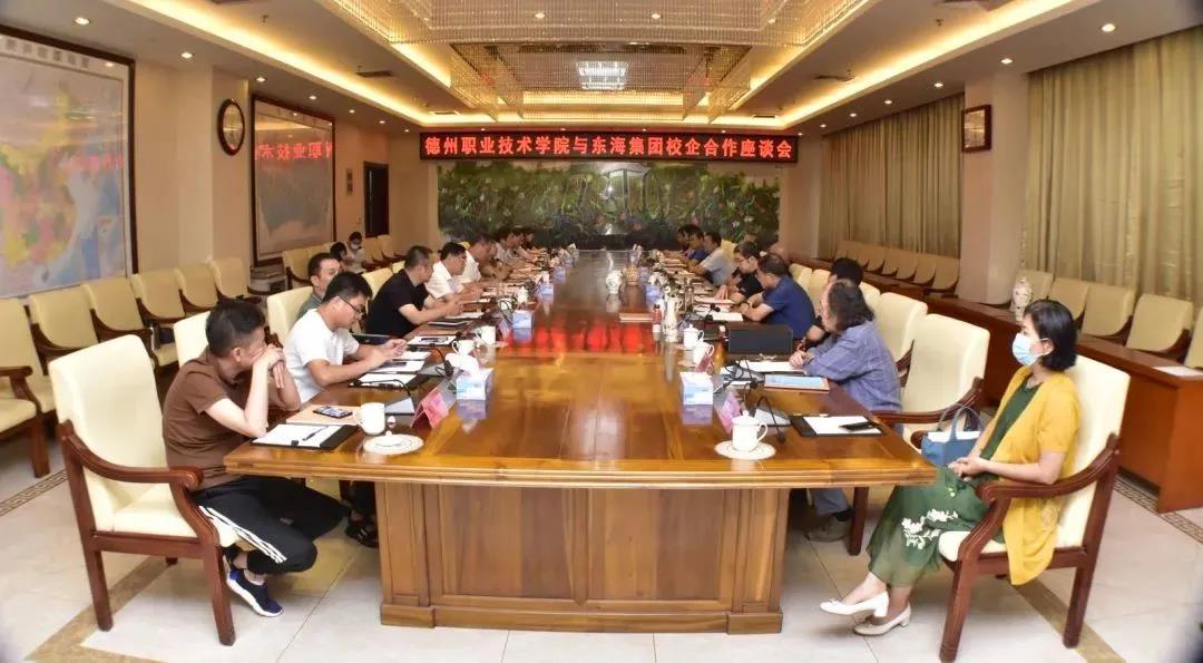 8月8日,德州职业技术学院与东海集团在东海集团举行校企战略合作座谈会。民盟省直文化和旅游支部主委、山东省区域文化产业研究院院长孙吉国,德州市纪委一级调研员、市人大教科文卫副主任委员徐安国,德州市委宣传部副部长倪靖寰,德州市政协文史委主任王德胜,东海集团董事长魏建国、党委书记苏振水、执行总裁孔祥东,德州市旅游协会书记宋善举,德州市美术馆馆长、市美协副主席付峰远,德州市文化产业促进会副会长胡东海,德州职业技术学院副院长张苹、建筑园林系、继续教育学院等有关方面领导和专家参加参加座谈。