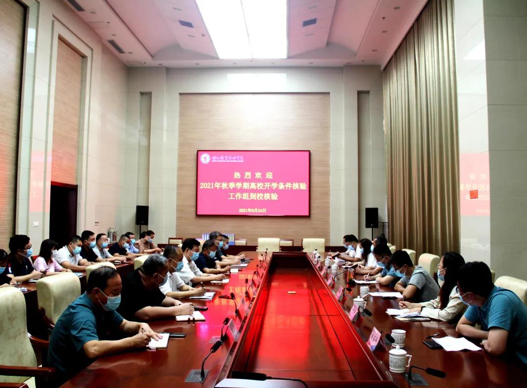 8月24日上午,2021年秋季学期高校开学条件核验工作组在市教育和体育局党组副书记、市委教育工委副书记、体育总会主席张卫东的带领下,来我校进行开学条件核验,校领导樊兆杰、多建民、郭士武、周吉星和学校相关部门负责人参加活动。
