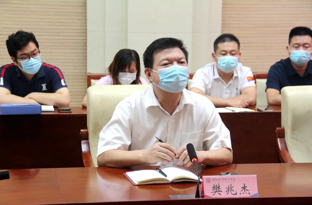 校党委书记樊兆杰代表学校发言,表示,学校将紧绷疫情防控工作这根弦,严格落实上级部署和要求,根据反馈意见建议,进一步完善开学方案,抓紧抓实抓细疫情防控工作,筑牢疫情防控防线,切实保障校园安全和师生健康,确保秋季学期各项工作正常有序开展。