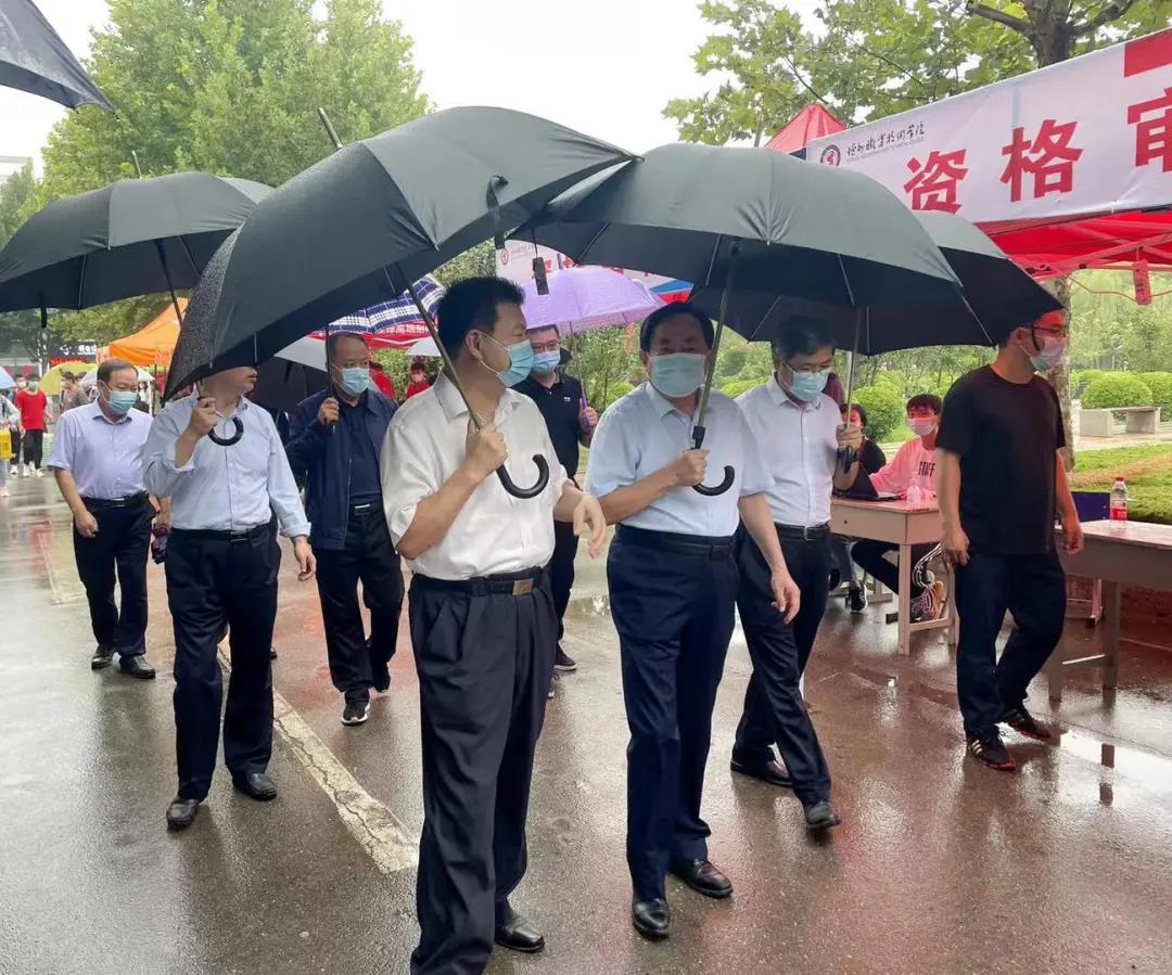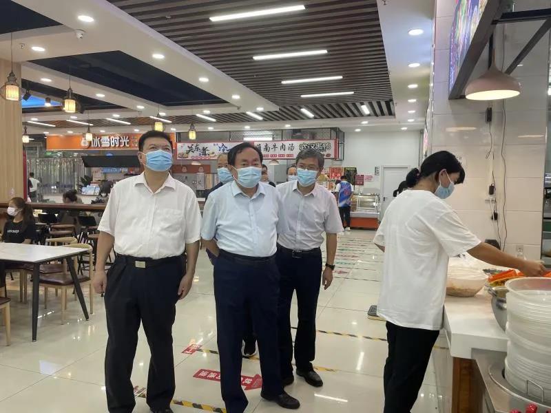 董绍辉先后查看生活区消毒测温点、新生报到点、学生食堂、学生宿舍、隔离场所、医务室等地点,对学校严格落实防疫要求、精心谋划,统筹疫情防控和学校开学、新生报到工作给予充分肯定。
