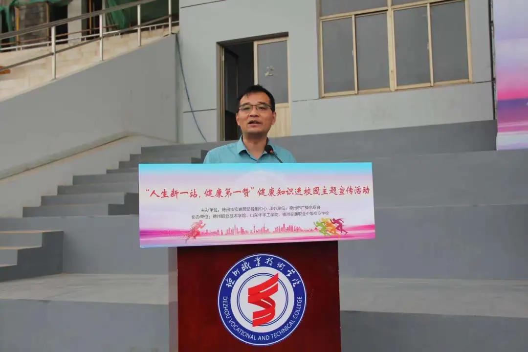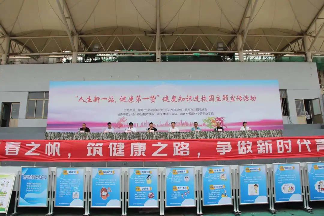 9月4日,由德州市疾病预防控制中心举办,德州市广播台承办,德州职业技术学院、山东华宇工学院、德州交通职业中等院校共同协办的“人生第一站,健康第一赞”健康知识进校园主题宣传活动启动仪式在德州职业技术学院顺利举行。