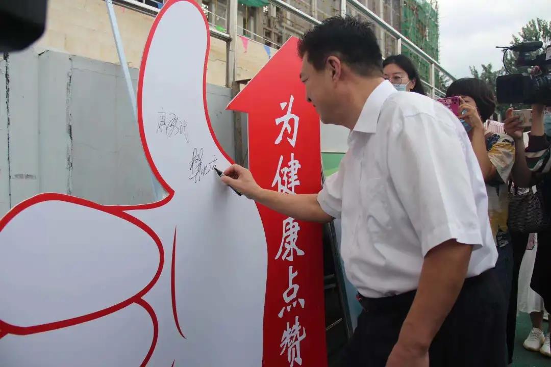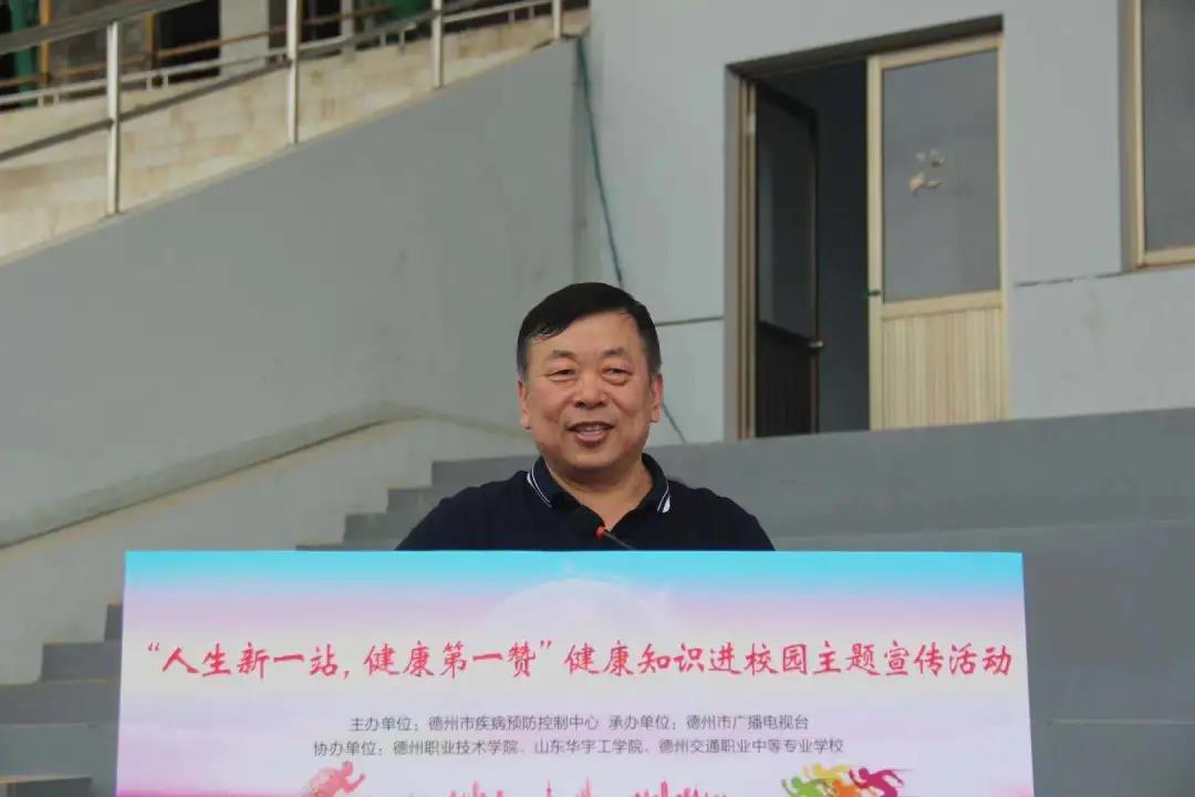 山东省疾病预防控制中心副主任康殿民、德州职业技术学院党委书记樊兆杰、德州市疾病预防控制中心主任王振东、山东省疾病预防控制中心健康教育所所长王连森、德州市广播电视台党委副书记马清水、德州职业技术学院党委委员、副院长郭士武,德州职业技术学院、山东华宇工学院学生处负责同志,及我校4000余名新生参加此次启动仪式。