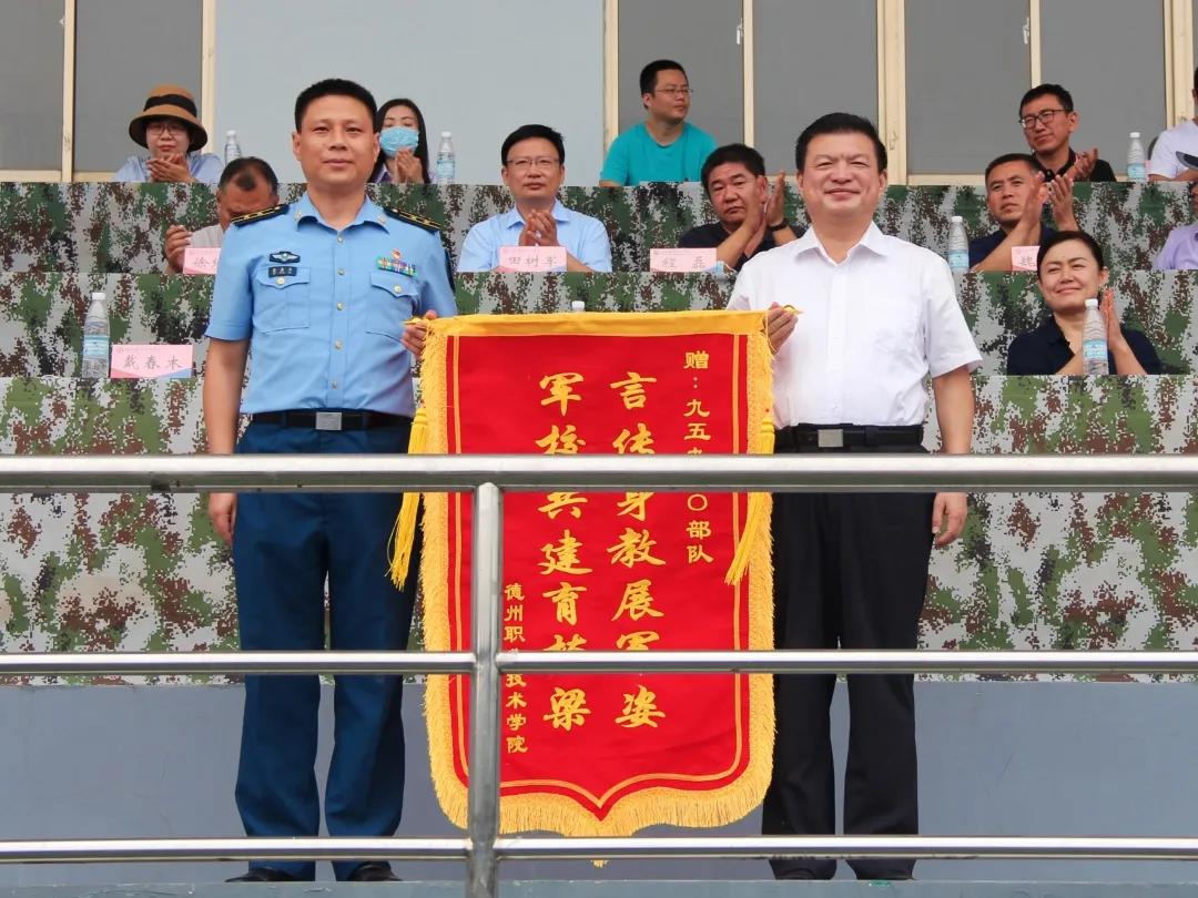 汇演结束,学生处处长刘宏杰宣布获奖方队名单,与会领导为获奖方队及单位颁奖。校党委书记樊兆杰向95920部队赠送锦旗。大会在振奋人心的《强军战歌》中圆满结束。