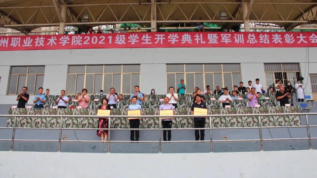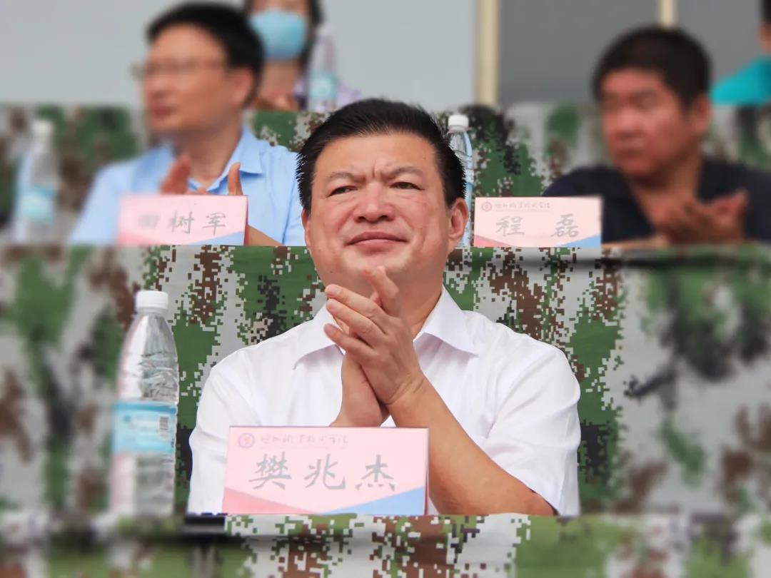 军训是对精神的洗礼,是对身体的历练。9月16日上午,我校2021级新生开学典礼暨军训总结表彰大会在田径运动场举行。校领导樊兆杰、张同光、张苹、周爱红、聂长义、多建民、周吉星,中国人民解放军95920部队副政委戴春木,95920部队参谋潘成磊出席大会,校党委委员、副院长郭士武主持,学校有关处室主要负责人,各系部党总支书记、科长参加活动。