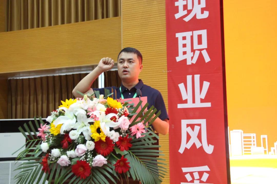 竞赛决赛裁判长孙立新宣读《竞赛规则》;选手代表朱黎明、裁判员代表郑树峰分别宣誓。