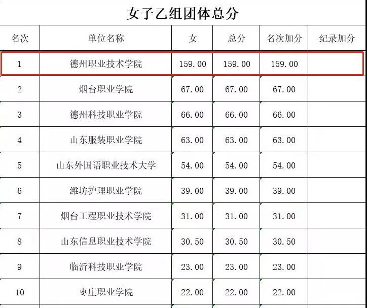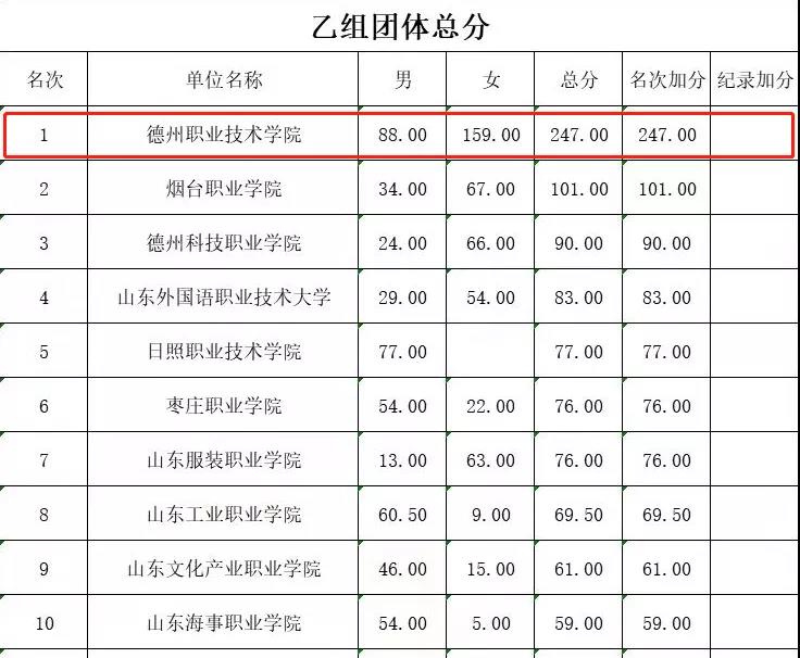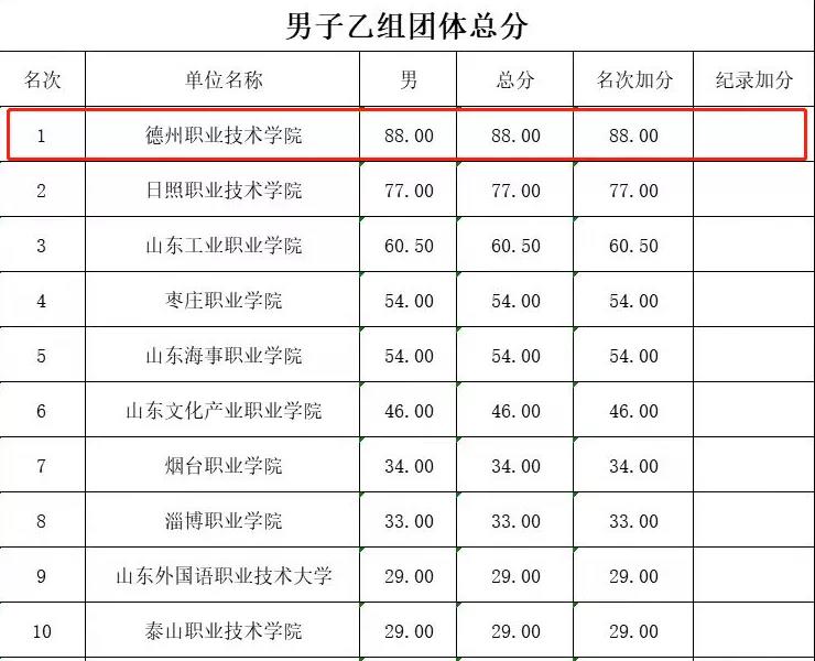 此次大运会在学校领导、教务处及各系部的大力支持下,经过基础部精心安排和教练员宋书华、孙建、封宗寿、刘霆、徐建等老师的精心选材,制定周密训练计划、合理安排训练时间,27名队员及教练员,牺牲暑假、中秋节和国庆节等节假日休息时间,持之以恒,刻苦训练,积极参赛,取得了省大运会田径项目成绩的历史性突破,在全省高职院校中树立了“德职”形象,擦亮了“德职”名片,提高了学校知名度和美誉度。