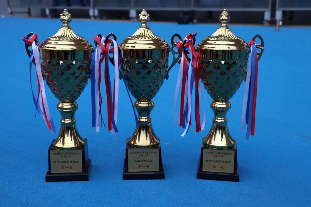 山东省第十六届大学生运动会田径项目比赛于10月14日落下帷幕。在为期五天精彩紧张的比赛过程中,我校田径队克服困难,不畏强手,勇敢拼搏,再续辉煌,以团体总分247分,超过第二名146分的成绩夺得大学生乙组“高职高专院校普通学生(含本科院校专科学生)”团体总分第一名,同时获男子组团体总分第一名,女子组团体第一名,即三项团体总分第一全部由我校获得。代表队共夺得金牌10枚、银牌7枚、铜牌5枚,第四名2个,第五名2个,第六名1个,第七名3个,第八名2个,实现金牌总数第一名、奖牌总数第一名的优异成绩。大运会上刮起了德州职业技术学院运动健儿摘金夺银的胜利旋风。