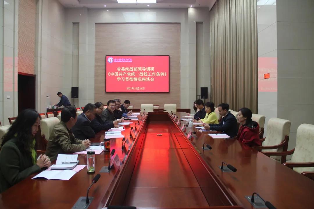 张静同志对我校改革发展取得的优异成绩给予高度评价,对学校党委高度重视《中国共产党统一战线工作条例》学习贯彻工作给予充分肯定。她表示,学校在阵地建设和文化凝聚方面亮点和特色十分显著,希望学校发挥统战资源丰富的优势,通过文化引领把党外代表人士凝聚起来,培养造就更多党派先进人物,守牢意识形态安全底线,推动学校高质量发展,为全省统战工作做出新的更大贡献。