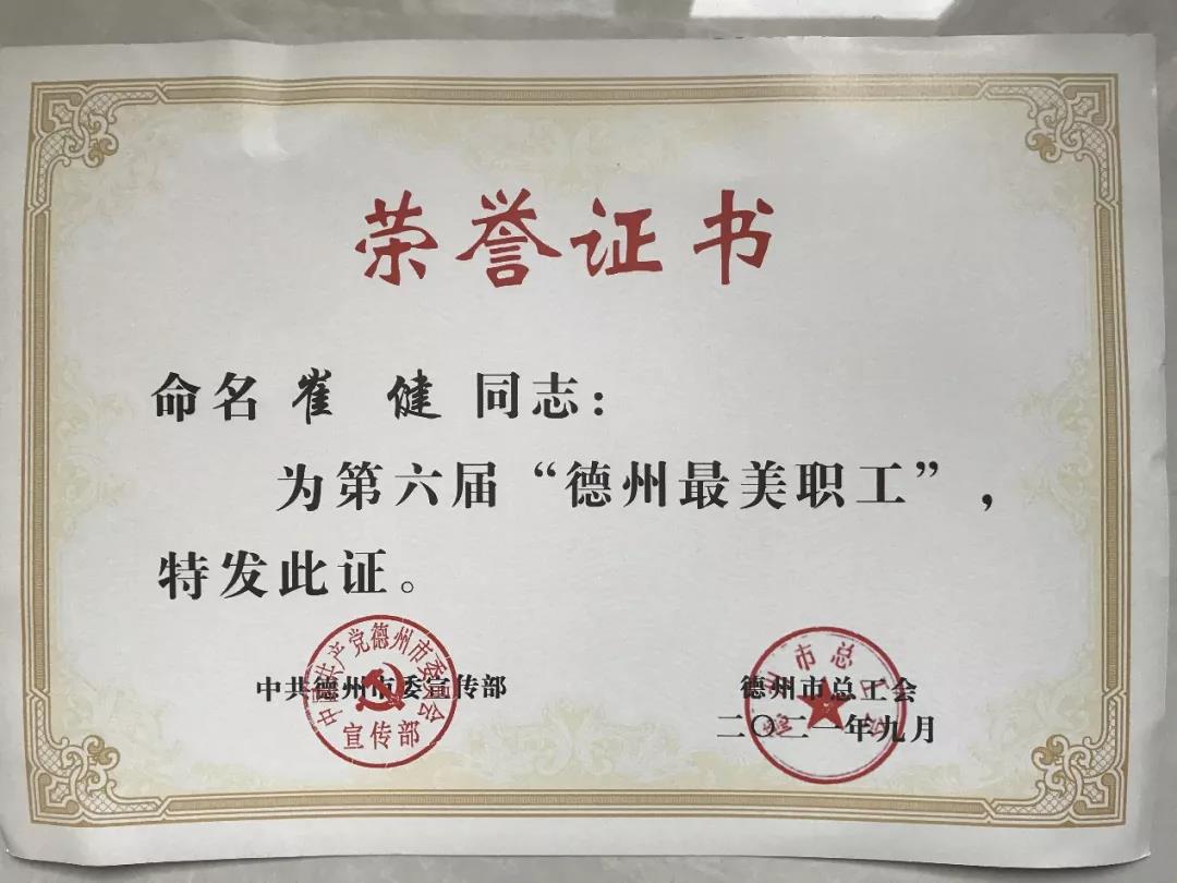 近日,市委宣传部、市总工会召开第六届“德州最美职工”座谈会,公布第六届“德州最美职工”名单,我校教师崔健被授予“德州最美职工”荣誉称号。