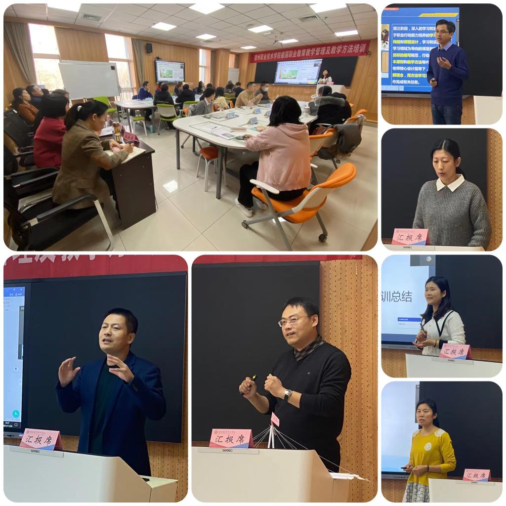 活动伊始,各小组选派代表做了精彩的汇报,展示了团队的学习成果,将培训班中的行动导向、教学方法、学习领域的构建、课程设计等培训内容进行了一次系统的回顾,同时结合国情、校情,吸取德国职业教育中先进的教育理念和教学方法,因地制宜,活学活用,改革创新,在专业、课程建设和教育教学中加以运用,坚持以学生为主体的教学原则,推动我校人才培养质量的提升。