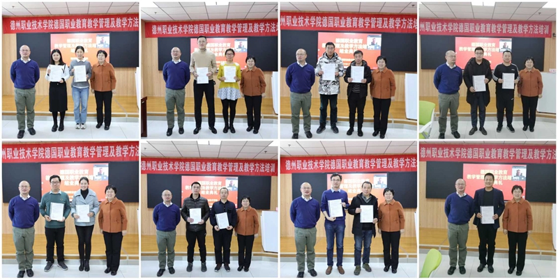典礼上,副院长殷淑英和基金会中方代表袁东升主任共同为每一位受训教师颁发证书。教师们纷纷表示,学习是一种信仰,教育是使命,我们将不忘初心,砥砺前行,逐步将德国职业教育模式与中国职业教育的实情相结合,整合中德两国职业教育方法与资源,深入推进我校国际化办学,进一步充实省优质校、职教高地建设的内涵,着力提升办学核心竞争力,助力学校高质量发展。