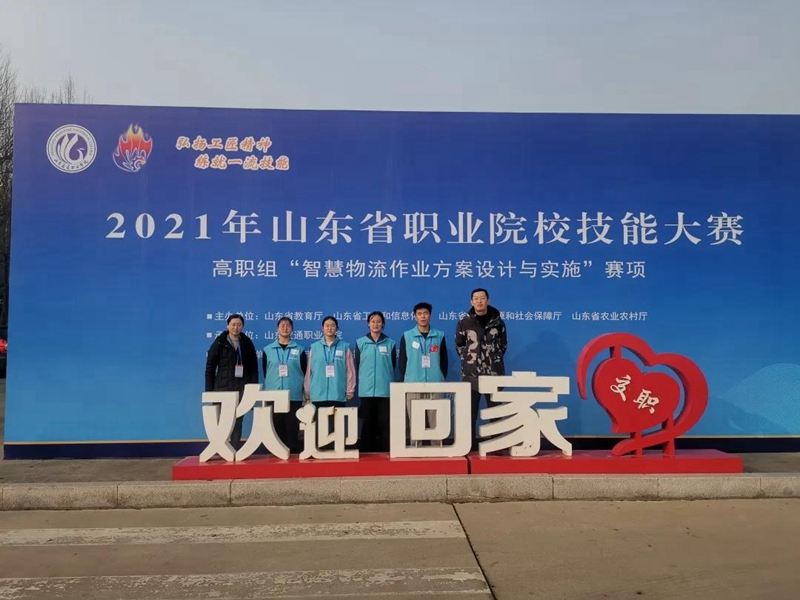 2021年山东省职业院校技能大赛 “智慧物流作业方案设计与实施”赛项于 12 月 8 日至11 日,在潍坊山东交通职业学院举行。来自全省36支代表队的140余名选手参加角逐。我校经济管理系物流管理专业四位学生闵文涛、王会蛟、高鲁豫、李乐组建的代表队,代表德州职业技术学院参赛,在王智伟、左丽丽老师指导,技压群雄,荣获三等奖。