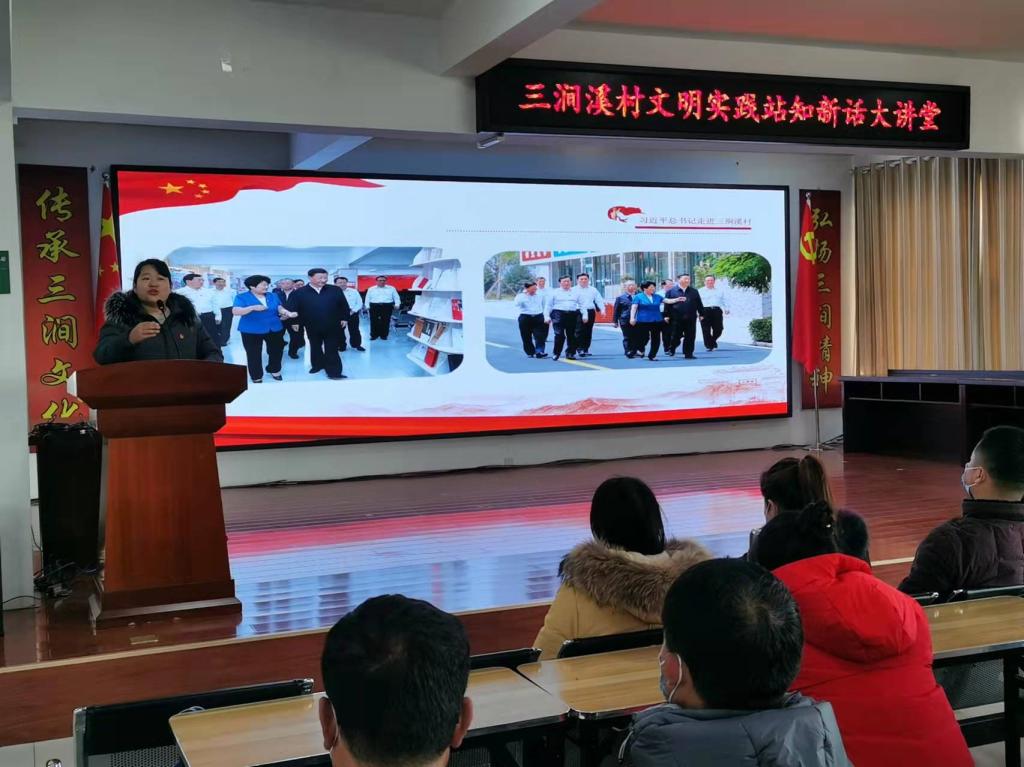 村委会叶贵芬主任向大家讲述了习近平总书记到村考察的经过,并结合自身工作经历,介绍了党组织建设经验和先进做法,以及该村未来在党建、经济发展、民生提升等方面的规划。