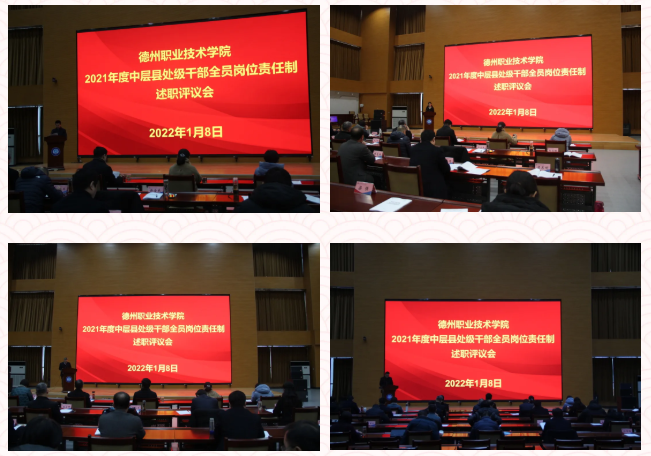 为进一步激发广大干部履职尽责、干事创业的积极性,加强中层领导班子和干部队伍建设,2022年1月8日上午,我校召开2021年度中层县处级干部全员岗位责任制述职评议会。校领导樊兆杰、张同光、张苹、周爱红、殷淑英、聂长义、多建民、郭士武、周吉星、孟繁营出席会议,学校副县级以上干部参加会议并述职。