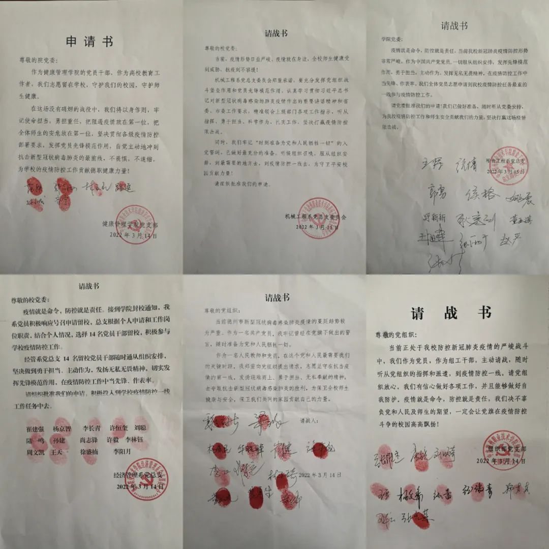 同学们、老师们、同志们,在百年党史征程中,中华民族每当处在重要的历史关头、遇到艰难险重任务时,都有党员干部冲锋在前。当前,上级发出“在疫情防控工作中进一步发挥党组织及党员干部积极作用”的动员令。学校各级党组织和党员干部教师闻令而动,挺身而出,纷纷请战,自愿到疫情防控一线,承担更加艰巨的任务,充分发挥了党组织的战斗堡垒作用和党员的先锋模范作用。面对这场没有硝烟的“硬仗”,希望各级党组织和广大党员干部教师继续用实际行动诠释初心、诠释使命、诠释忠诚,让党旗在疫情防控一线高高飘扬。