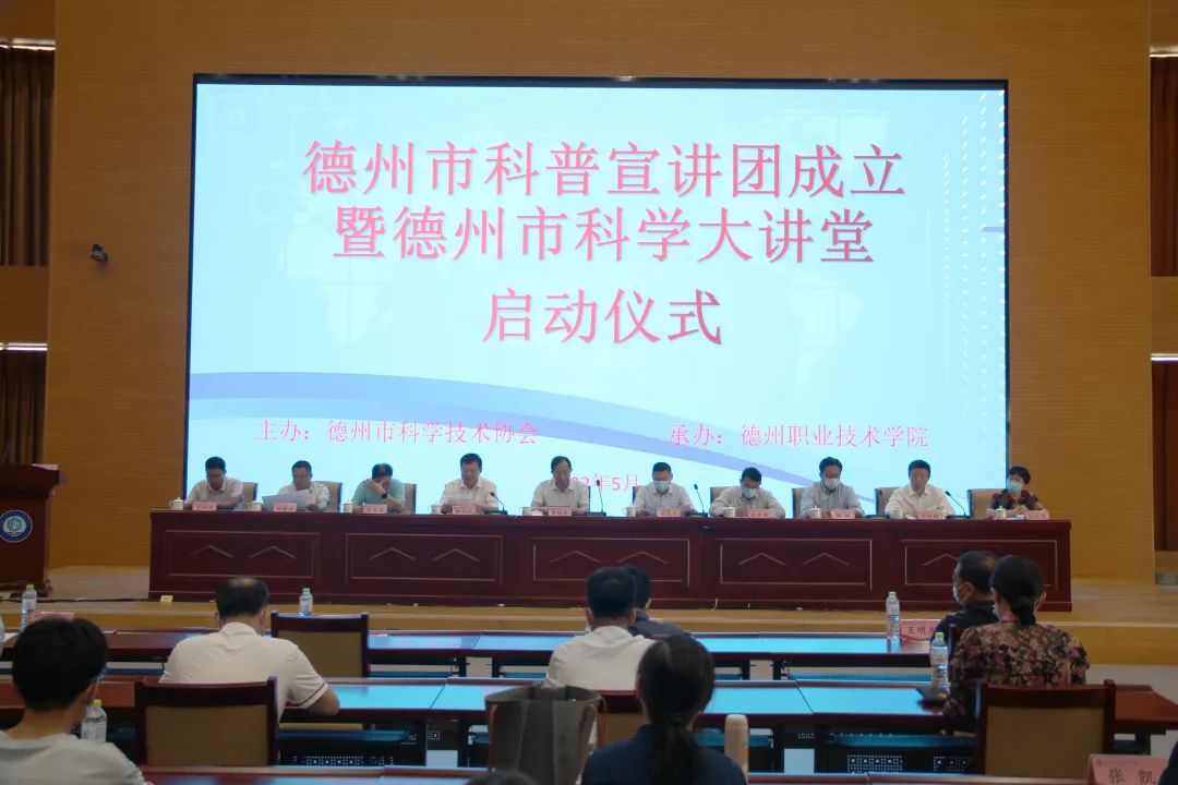 5月26日,德州市科普宣讲团成立暨德州市科学大讲堂启动仪式在德州职业技术学院举行。山东省科协党组成员、副主席袁慎庆、德州市政协副主席辛志才等省、市及科协领导,德州职业技术学院党委书记樊兆杰、校党委委员、副院长殷淑英出席会议,省、市级科普宣讲团专家、武城、齐河县科协主席、德州职业技术学院教师及学生代表等近80人参加会议。市科协党组书记、主席苗晓钢主持会议。
