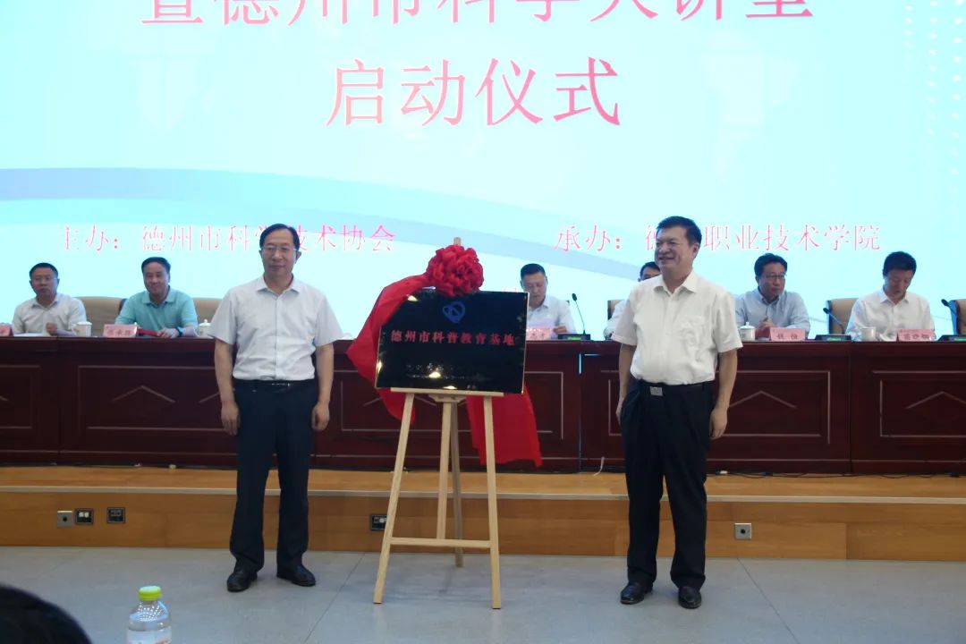 袁慎庆和樊兆杰为德州市科普教育基地揭牌。