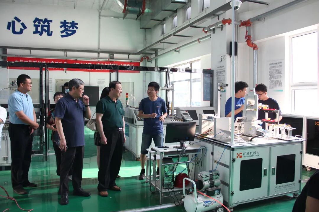 在张同光陪同下,年维佳一行参观了学校建设沙盘、中华德能鼎、校史馆、现代绿色化工实训平台、现代智能制造实训平台、现代工业机器人实训平台、现代汽车工程实训平台。