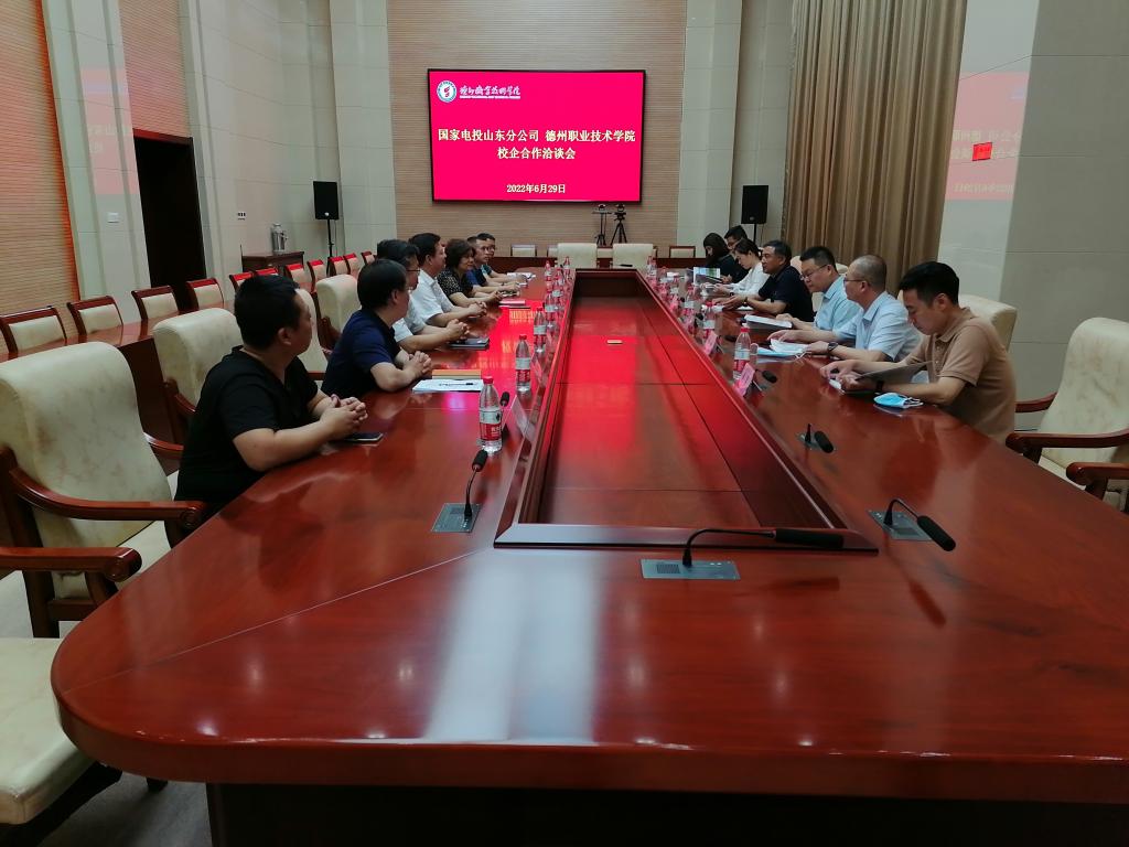 6月29日,国家电力投资集团有限公司山东分公司党委委员、纪委书记、工会主席聂品一行8人,来我校考察交流。校党委书记樊兆杰热情接待来宾并与企业洽谈合作事宜,校党委委员、工会主席周爱红,校党委委员、纪委书记魏先军陪同,电子与新能源技术工程系相关同志参加座谈会。