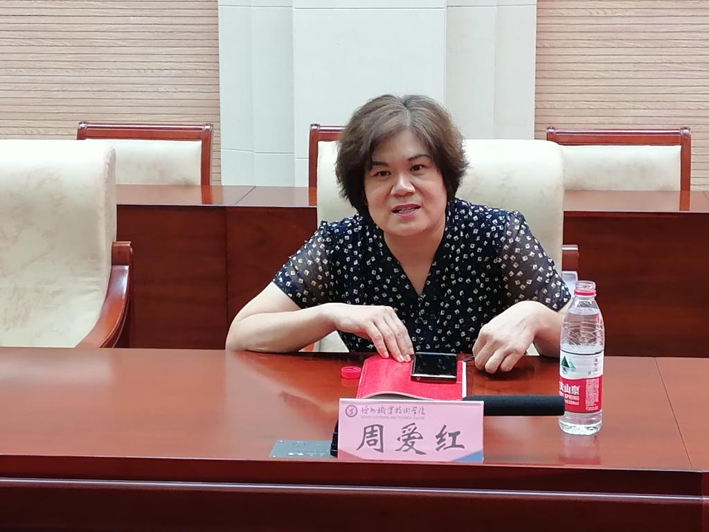 周爱红介绍了我校校企合作方面取得的优异成绩和成功经验。她表示,希望校企在技能大赛、科技研发和产教融合等领域开展深度合作,打造优势平台。