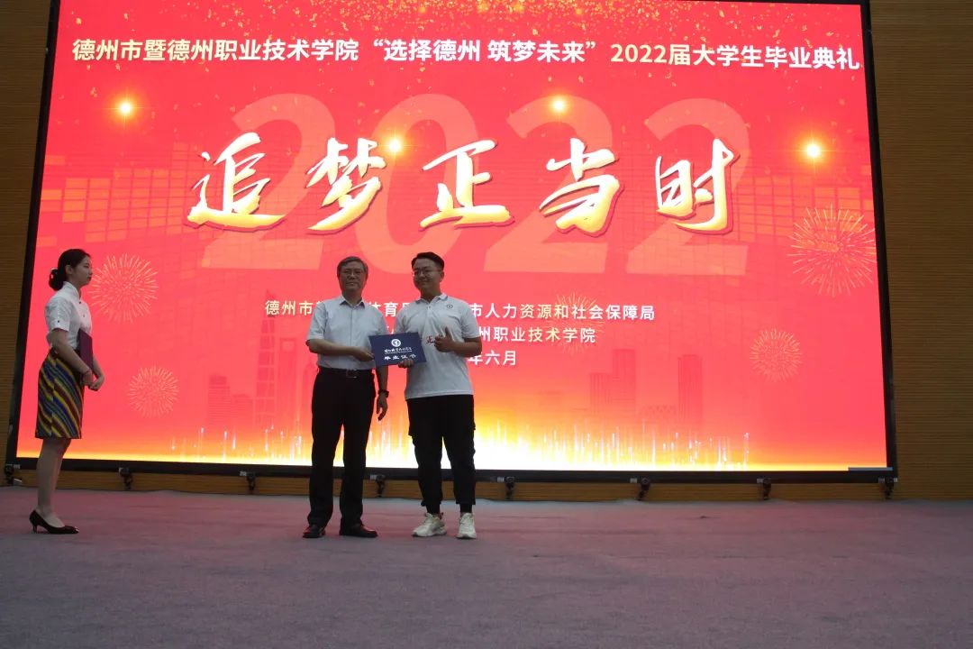 6月30日上午,德州市暨德州职业技术学院2022届学生毕业典礼在我校隆重举行。德州市人民政府副市长邵红双,市政协副主席、市委教育工委副书记、市教育体育局党组书记、局长隋力,市委组织部副部长、市人力资源和社会保障局党组书记、局长郭洪霞,市共青团副县级干部孙志国,德州职业技术学院领导班子成员出席毕业典礼,我校教师、辅导员、2022届毕业生和学生家长代表参加活动,共同见证青年成长,激励毕业生踏上新征程、谱写新篇章。