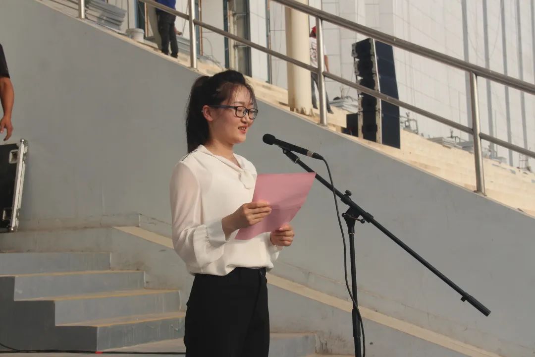 伴随着雄壮激昂的国歌声响起,全场师生齐声合唱国歌。