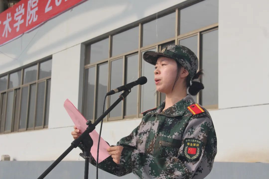 殷淑英代表学校全体教职员工向同学们表示衷心祝贺和热烈欢迎,她对即将参加军训的2022级学生提出几点希望和要求,一是要端正态度,自觉参加军训,圆满完成军训任务。二是要刻苦训练,学习军人作风,增强国防信念,树立国家安全意识。三是要严守纪律,争当优秀学员,做守正创新、继往开来的德职人。全体学生要自觉肩负起时代赋予的重任,传承发扬“崇德尚能 敬业乐群”的校训精神,以长志气、硬骨气、蓄底气的姿态,在充满希望的新征程上奋力奔跑,书写出无愧于自己、无愧于家国、无愧于时代的青春华章。