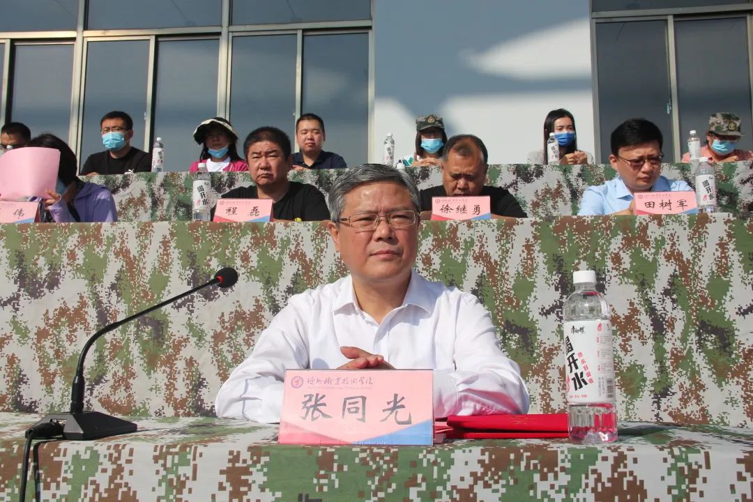 院长张同光致辞,代表全校师生向新同学表示热烈欢迎,向本次承训的退役士兵同学和辅导员助理们表示衷心感谢。他以“奋楫扬帆向未来”为主题,向全体新生提出殷切期望:一是要增强政治意识,坚定政治信仰,胸怀远大理想,感党恩、听党话、跟党走,努力成长为中国特色社会主义的合格建设者和可靠接班人。二是要增强技能报国信心,抢抓党和国家高度重视职业教育的重要机遇,脚踏实地,勤学苦练,在技能报国的生动实践中谱写精彩人生。三是要弘扬德能精神,热爱学校、融入学校、为校争光,努力营造团结互助、诚信友爱、融洽相处、共同进步的和谐校园氛围,成长为德之楷模、国之栋梁。四是要全面发展,强健体魄,健全心智,自立自强,积极参加文体活动和技能比赛,在克服困难和挑战中成长成才。