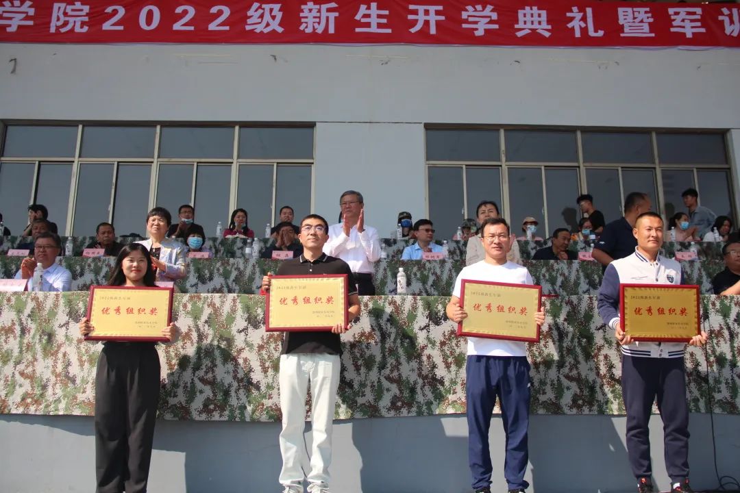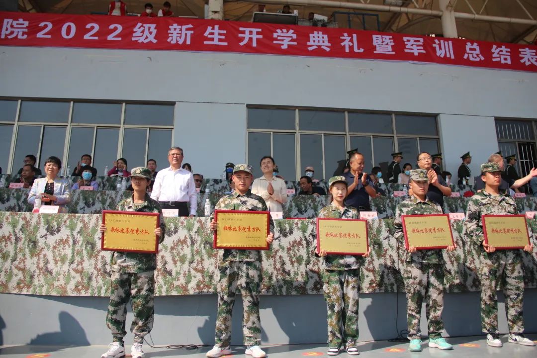 厉兵秣马日,沙场点兵时。9月28日上午,我校2022级新生开学典礼暨军训总结表彰大会在田径场举行。校领导张同光、张苹、殷淑英、周吉星、孟繁营出席大会,学校有关处室主要负责人、各系部党总支书记、学生科长、2022级辅导员、班主任,4700余名新生参加大会。校党委委员、副院长郭士武主持。