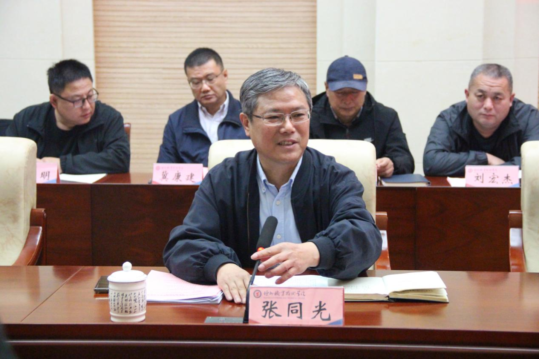 张同光就我校国家职业教育创新发展高地工作落实情况作专题汇报。2020年以来,学校落实部省共建职教高地工作部署,取得许多成效。我校对照标准要求,着力提升和改善办学条件;进一步落实办学自主权,内部治理体系更加科学;实施名师培养工程,建设“一优三强”的双师型教师队伍;强化经费保障,激励机制更加精准有力;聚焦高水平专业建设,突出特色化发展;落实“一校一案”,提质培优赋能实现新突破。