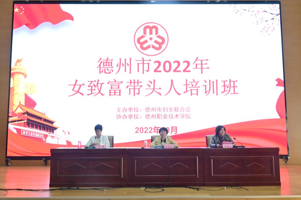 10月12日,由德州市妇联主办、德州职业技术学院承办的山东省女致富带头人培训工程暨德州市2022年“乡村振兴 巾帼人才”女致富带头人培训班,在德州职业技术学院隆重开班。德州市妇联主席赵晓静、德州市妇联副主席俞萍、德州职业技术学院工会主席周爱红等领导出席,全市各级妇联组织推荐的优秀妇女代表参加培训。