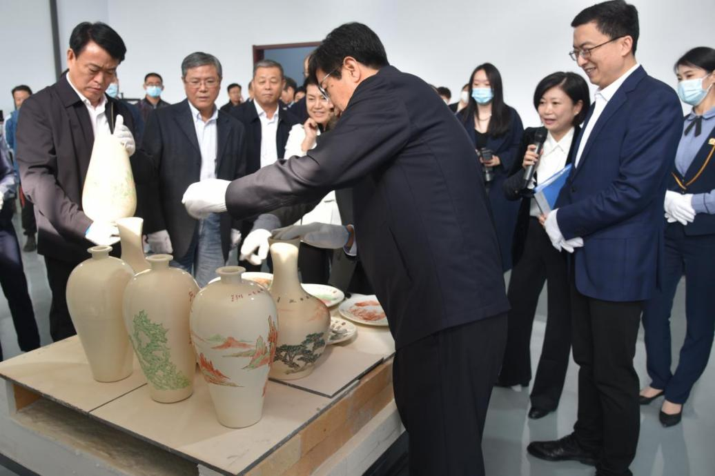 德州市领导到德州职院视察德州窑红绿彩生产实训基地