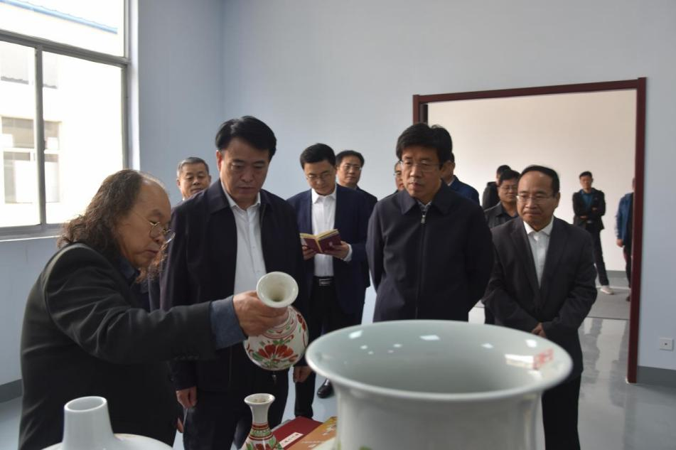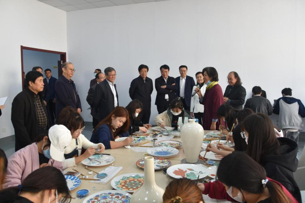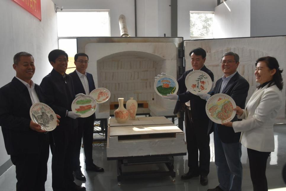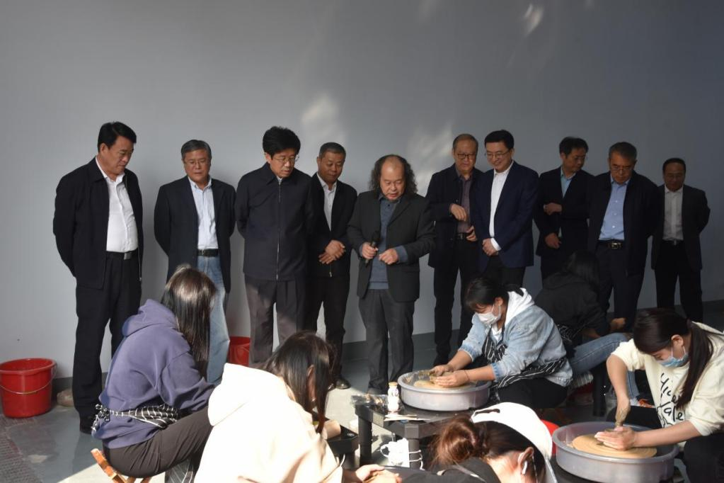 10月15日上午,德州市人大常委会副主任景文新,德州市人大常委会副主任、德城区区委书记张泽中,德州市人民政府副市长牟春雁一行莅临我校,参观“德州窑”红绿彩实习实训基地,调研我校传统文化传承发展、红绿彩文化研究院建设、校企合作实训基地建设情况。院长张同光,市政协副主席、副院长张苹陪同活动。