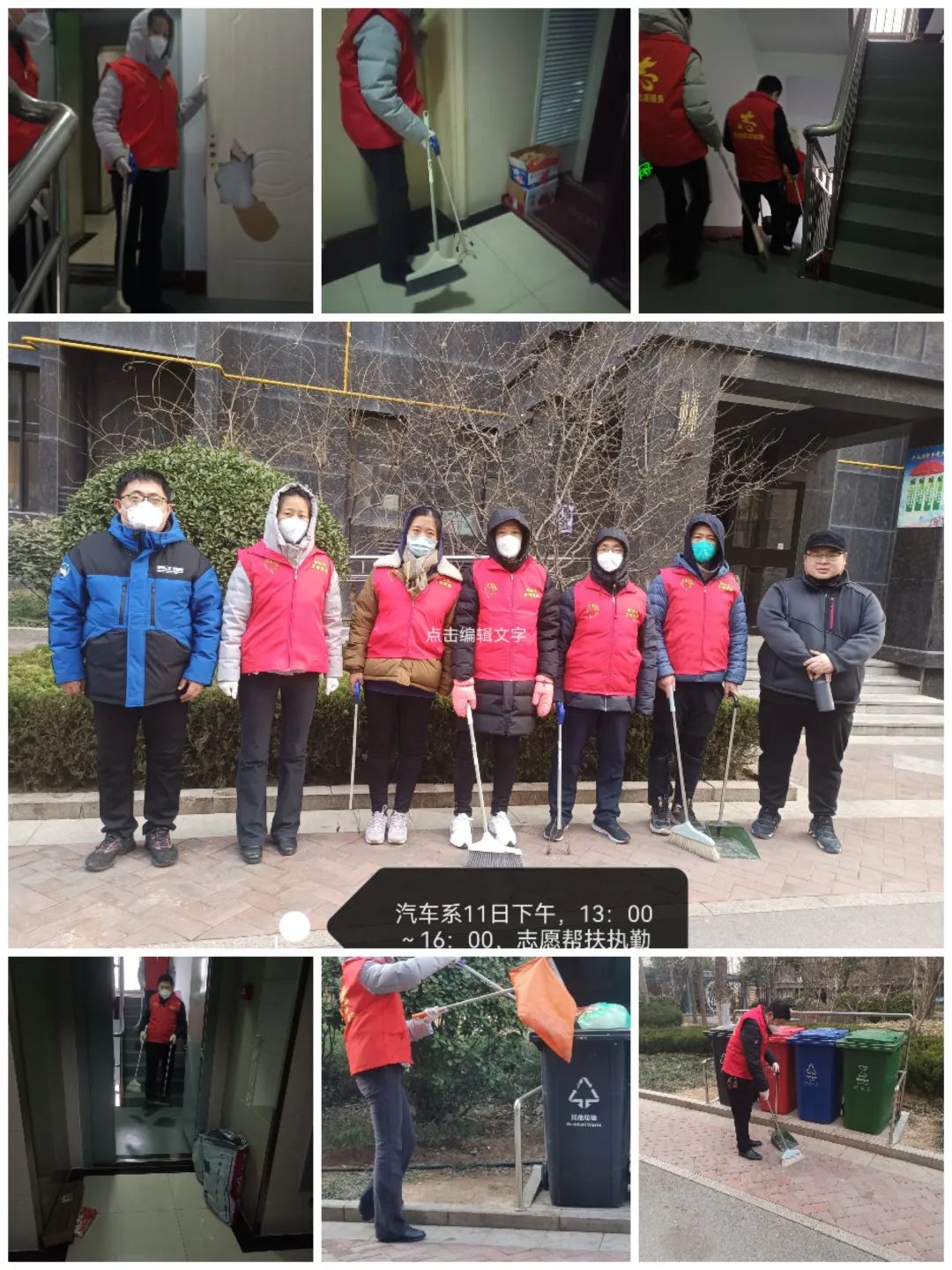 为服务全国文明城市创建,1月11日,我校志愿者顶着严寒,分别到对口帮扶小区——双馨苑小区和八里庄盛世华园小区开展文明劝导志愿服务活动。志愿者们身着红马甲,清扫社区内楼宇楼道及周边环境卫生,规范有序摆放车辆,高标准完成帮扶工作,成为一道亮丽的风景线,不仅向全社会展示了我校区域文明高地的良好形象,也受到社区居民的一致好评。