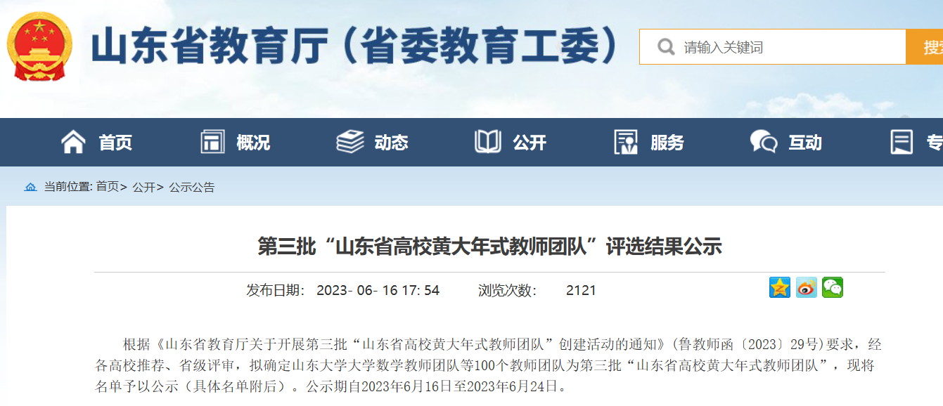 德州职院1教师团队获评第三批“山东省黄大年式教师团队”