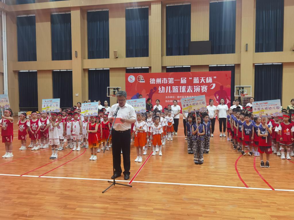 7月2日,德州市首届“蓝天杯”幼儿篮球表演赛在德州职业技术学院综合体育馆举行,来自德州职业技术学院校企合作的9所幼儿园的300余名幼儿在篮球操表演赛、篮球个人技巧赛、3对3实战对抗赛等项目中展开激烈角逐。校党委委员、副院长周吉星出席开幕式并致辞,学前教育系相关负责人员参加活动。