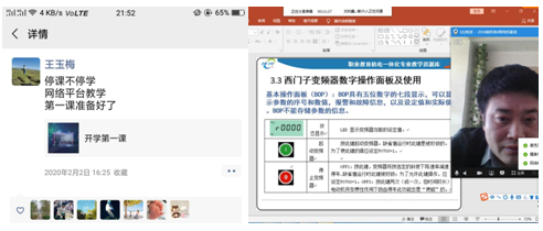 根据工作安排,2月17日网络授课正式开始。电气工程系广大教师通过班级QQ群、微信群、腾讯直播+职教云教学平台等多种形式,开展了丰富的线上教学活动。为了保证教学质量,老师们课前精心准备,将课本知识生动地用微课视频、课件等形式展现出来。