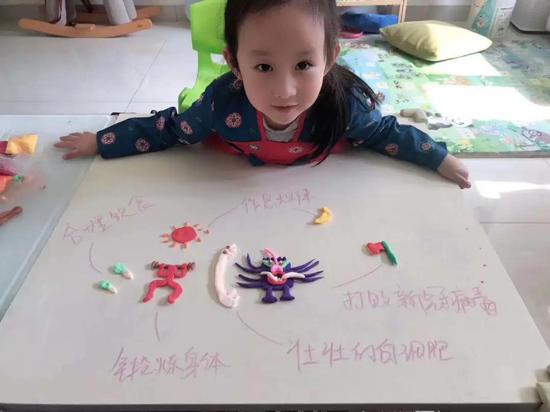 值得一提的是,看到5岁的女儿因为自己和丈夫的忙碌而委屈的样子,作为教育工作者的王霄琳给女儿讲起了爸爸在一线与叔叔阿姨们一起抗击新型冠状病毒的故事,听完妈妈讲的故事,萱萱开心地蹦起来:“爸爸是个大英雄!爸爸是去打病毒小怪兽了” ,女儿还专门手工制作了黏土画《打败新冠病毒》,送给爸爸和坚守一线的叔叔阿姨们。