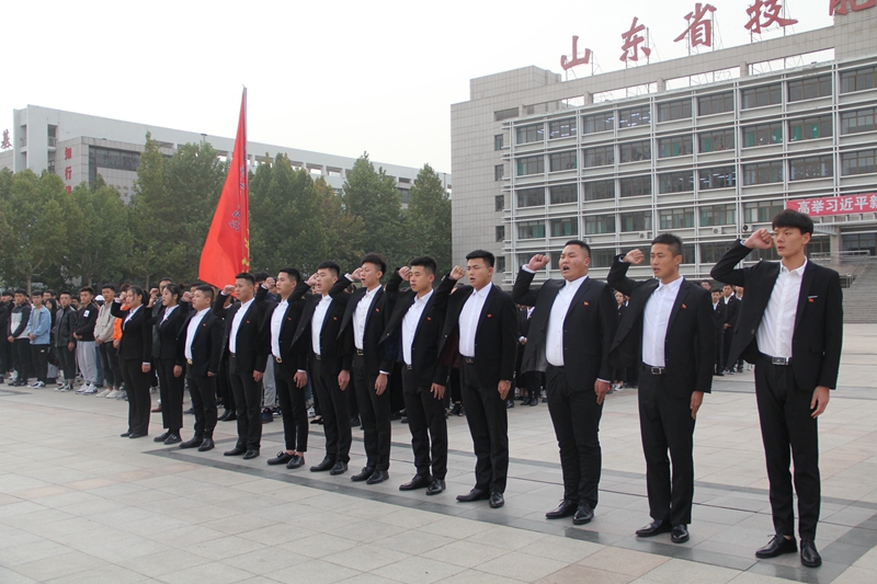 最后,计算机系党员代表、学生科科长王孟带领预备党员在国旗下面对党旗作庄严地入党宣誓。