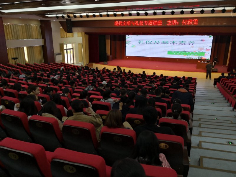 参加本次讲座的有菏泽牡丹区职专的领导、教师和学生300余人。讲座从仪容仪表、礼仪行为规范、日常礼仪、空乘礼仪等4个方面展开。参加讲座的师生热情高涨,现场的气氛异常热烈。